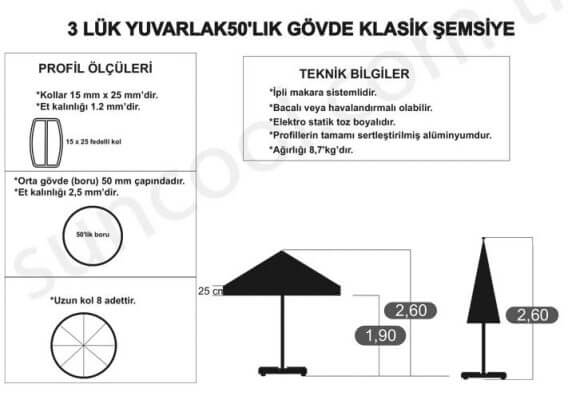 - Açıldığında 3m çapında (yuvarlak)dır.7m2 yer kaplar.